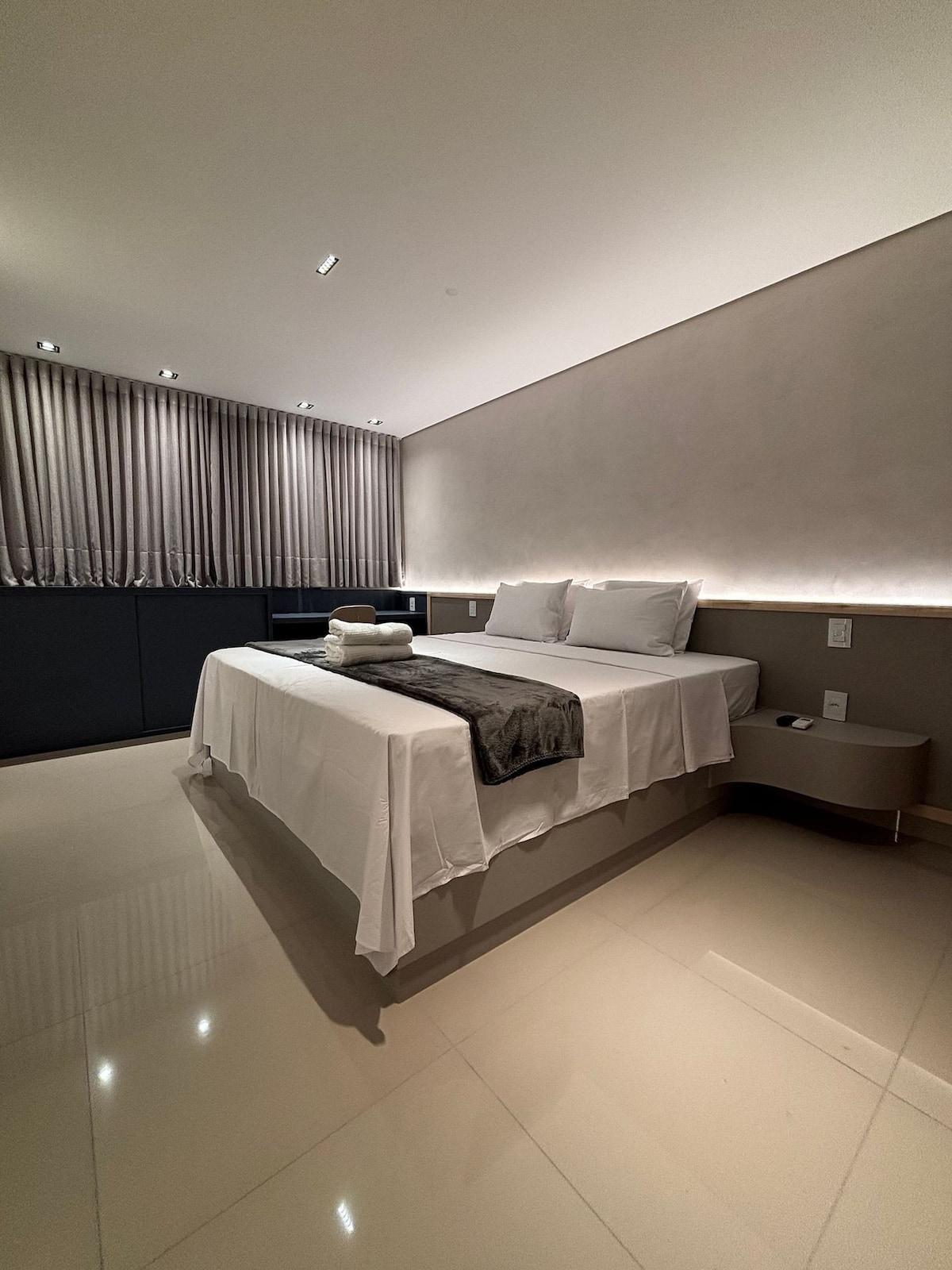 Сучасна студія площею 45 м² у верхній частині СЕТОР БУЕНО, на Т-37 з Т-63. Поруч із ЛІКАРНЕЮ Mater Dei, ПАРКОМ Vaca Brava, ТОРГОВИМ ЦЕНТРОМ Goiânia та медичним центром ORION, ідеально підходить для відпочинку, консультацій, іспитів або роботи. У регіоні є Pão de Açúcar, Oba Hortifr, ринки, аптеки, кав’ярні та широкий вибір КУХНІ. У помешканні є ліжко розміру QUEEN, додаткове ліжко, кондиціонер, швидкий Wi-Fi, смарт-телевізор і обладнана КУХНЯ, що забезпечує комфортне, функціональне та затишне перебування, ідеальне для різних потреб.