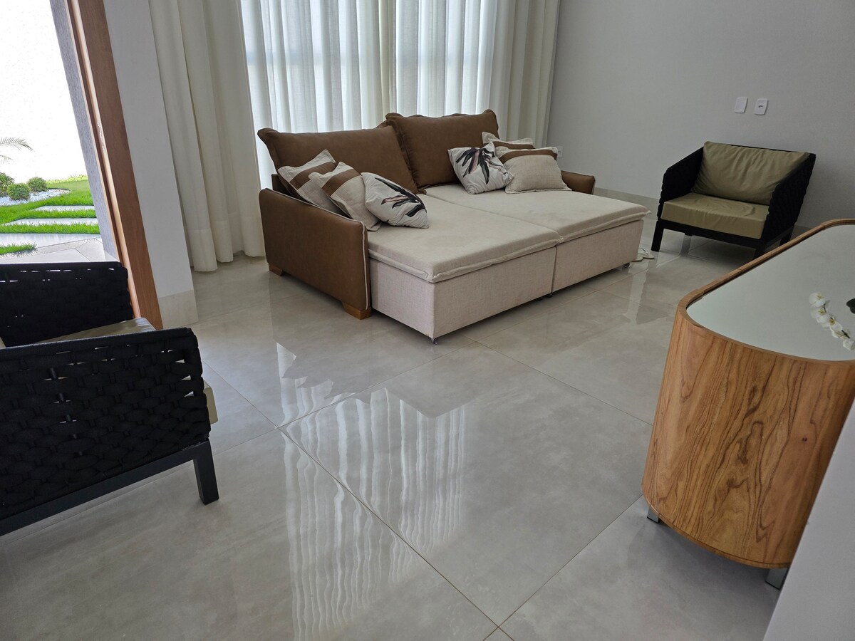 Насолоджуйтеся незабутнім перебуванням у цьому чарівному сучасному будинку з 2 спальнями (1 люкс із шафою) та 2 ванними кімнатами. Просторі кімнати, висока висота та елегантний декор забезпечують комфорт і стиль. У кімнатах є кондиціонер, повністю обладнана кухня, зона для гурманів із зоною для барбекю та гамаком, а також 1 крита зона. Підходить для домашніх тварин і розташований у Сектор-Нова-Свіцарела, всього за 200 м від парку Вака-Брава та поруч із Макдональдсом, Доміно, пекарнями, аптеками та супермаркетами.
