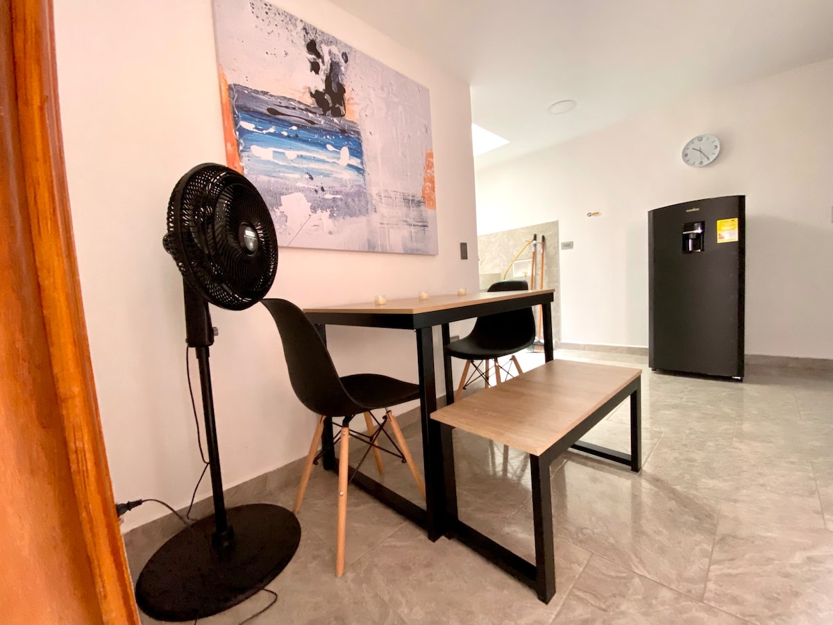 Відпочиньте в цій елегантній, сучасній квартирі в центрі Маніли – Ель-Побладо, всього за декілька хвилин від Провенци, Парку Льєрас та найкращих медичних центрів, таких як Клініка Медельїн, Клініка Лас-Вегас та Клініка Ель-Росаріо. ✔Насолоджуйтеся ліжком розміру «king-size» з постільною білизною преміум-класу, ✔Стильна ванна кімната з душовою кабіною, ✔Смарт-телевізор, ✔Високошвидкісний оптоволоконний Wi-Fi ✔Повністю обладнана кухня. ✔ Окремий балкон ✔Кондиціонер ✔ Гаряча вода ✨Ідеально підходить для коротких перебувань, ділових поїздок або відпочинку.