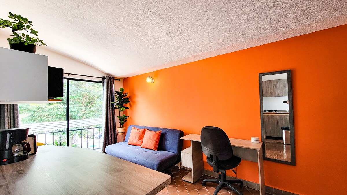 Відкрийте для себе сучасне та затишне помешкання в цьому дуплексі з видом на місто. Насолоджуйтеся теплою атмосферою з вітальнею, їдальнею, повністю обладнаною кухнею та двома окремими ванними кімнатами з усім необхідним для спокійного перебування. Ідеально підходить для 1-4 гостей, які шукають комфорт і привілейоване розташування. Усього в декількох хвилинах ходьби від парку Перро, де можна насолодитися гастрономією Калі, унікальними кафе та яскравою культурою сальси.