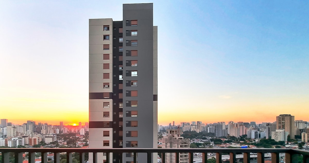 Студія з видом на одну з найкрасивіших листівок у місті Сан-Паулу - знаменитий Понте-Естайда. У ньому можуть розміститися до 4 осіб, з двоспальним ліжком і диваном-ліжком розміру «queen-size», а також робочим простором, повністю обладнаною кухнею, ванною кімнатою з газовим душем та балконом для відпочинку. Розташоване в районі Бруклін, недалеко від торгових центрів Morumbi та Market Place, з легким доступом до ринків і ресторанів із чудовою кухнею. У кондомініумі є зона для відпочинку, тренажерний зал і басейн.