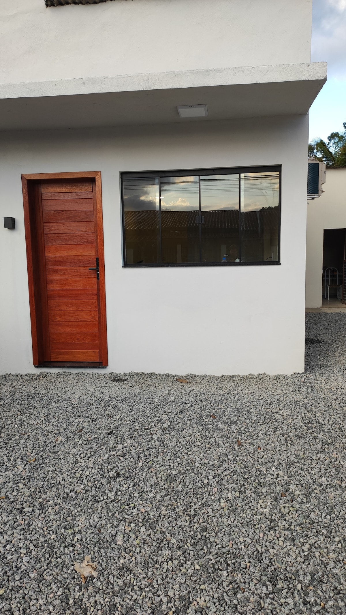 Casa studio, Jaraguá do Sul - SC. Затишне й надзвичайно чисте помешкання з можливістю розміщення до 4 осіб. Тут є двоспальне ліжко та диван-ліжко, повністю обладнана кухня для швидкого харчування, інвертор кондиціонера, Wi-Fi, індивідуальна ванна кімната, затемнюючі штори, візок для одягу та пральна машина. Поруч із супермаркетами, пекарнею, заправною станцією і всього в 4 км від центрального регіону міста та в 2 км від Католицького університету міста. В приміщенні не дозволяється КУРИТИ.