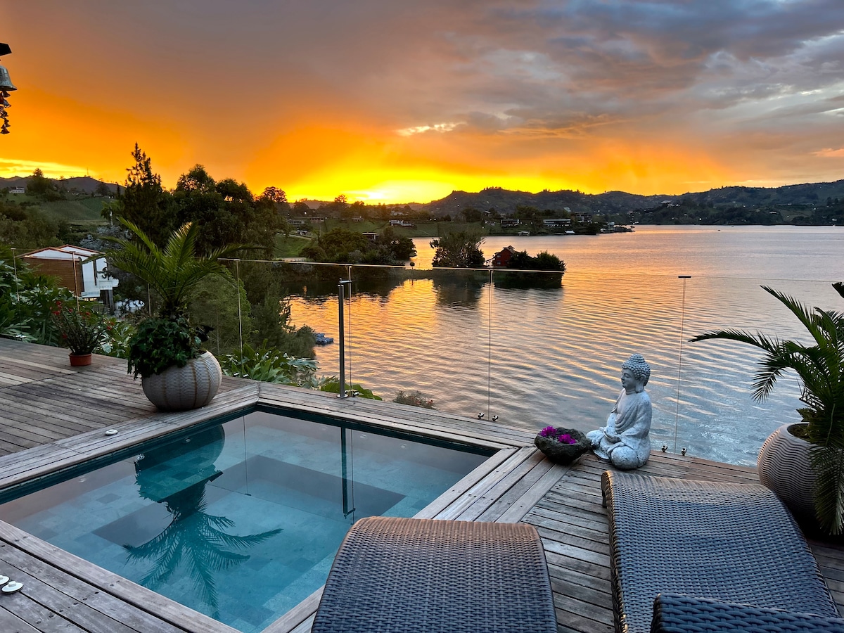 Acua Lake House, a private retreat with the best view of La Piedra. Perfect to relax and disconnect in harmony with nature. 🍳 Breakfast included 🛁 Jacuzzi 🌅 Deck 🍖 BBQ 🛀 Bathroom with garden 🛏️ Queen bed + sofa bed, max 4 guests 🌐 Starlink WiFi 🪢 Hammock area 🔥 Firepit 🚣♀️ Kayak & paddle board included 🍽️ Room service (optional) 🤵 Concierge by Marco 📍 5 min from La Piedra, 15 from Guatapé ✨ Every detail designed to offer you an unforgettable experience.