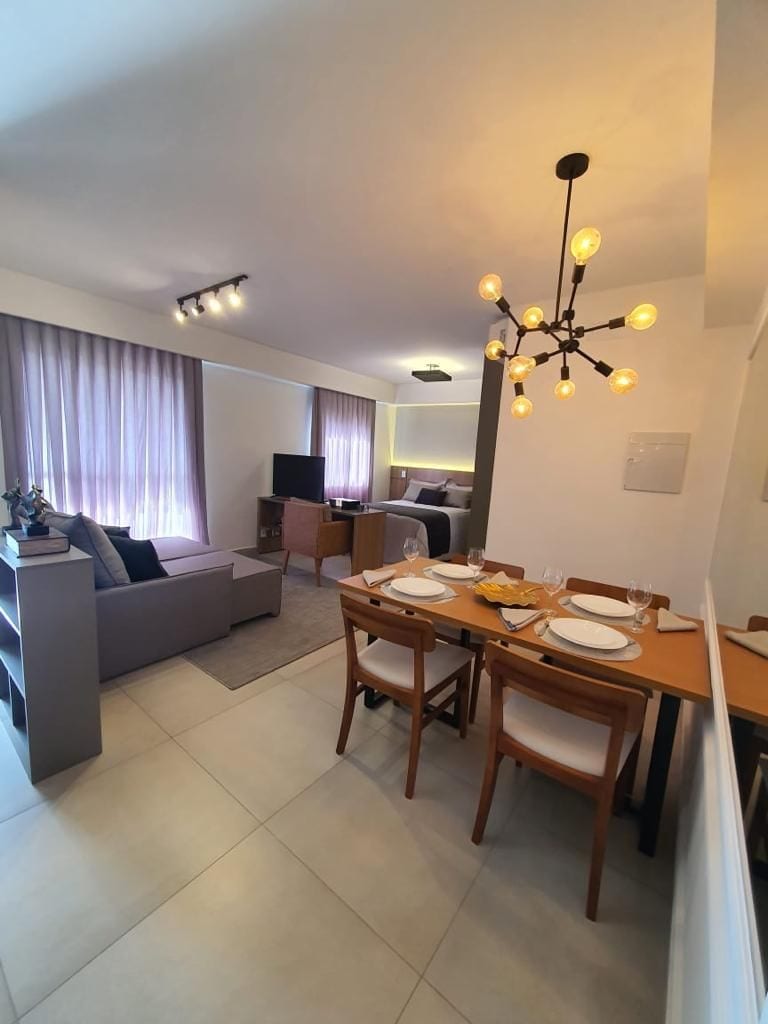 Красива квартира в центрі Рібейрао-Прето з балконом, спальнею, ванною кімнатою , місцем для гурманів і вітальнею . Вона має роздільний кондиціонер у спальні та вітальні, плита, мікрохвильова піч, міні-бар ,Wi-Fi з високошвидкісним (віддаленою роботою) телевізором з плоским екраном, кабельним телебаченням і обладнаною кухнею. Цілодобовий консьєрж із камердинером ,парковкою в критому гаражі, тренажерним залом ,басейном ,сауною та послугами ресторану. Щодня не включає сніданок. У будівлі також є конференц-зал і конференц-зал ( обслуговування не включено ).