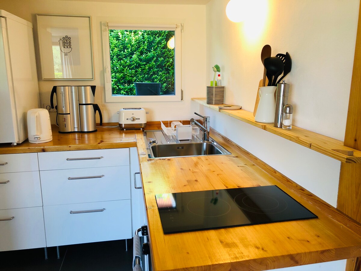 Ласкаво просимо до чарівної квартири площею 21 кв. м у окремому гостьовому будинку – ідеально підходить для індивідуальних мандрівників або пар, які цінують спокій і природу, але не хочуть відмовлятися від хорошого сполучення з містом. Невелика, добре обладнана кухня, власна ванна кімната та балкон з видом на сільську місцевість забезпечують комфорт і відпочинок. - 2 хвилини до автобусної зупинки. - 20 хвилин пішки до станції S-Bahn - 25 хвилин на автомобілі до центру міста Дрезден або до Мейсена