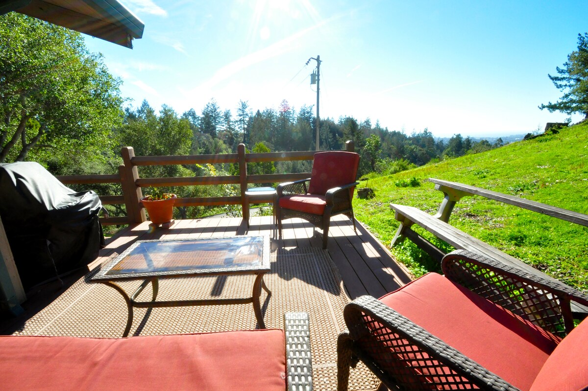Redwood Skye, наше класичне помешкання у формі літери А, розташоване серед високих дерев у горах Санта-Круз. Відпочиньте, розслабтеся та насолоджуйтеся пішими прогулянками, велосипедними поїздками, пляжами, парками та іншими можливостями – усе це допомогло нам потрапити в телесеріал «Домашні канікули», який отримав премію «Еммі». Зручне розташування: 5 хвилин до державного парку Генрі Коуелла, залізниці Roaring Camp та музичного залу Felton; 15 хвилин до Санта-Круз з його знаменитим дощаним настилом та вражаючими пляжами; 45 хвилин до Сан-Хосе; ~1 година до SFO.