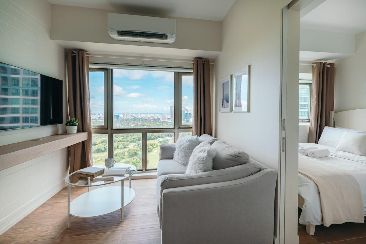 Затишна кутова квартира-студія всього в 5 хвилинах від терміналу 3 аеропорту NAIA та Runway Manila. Насолоджуйтеся світлим простором із видом на аеропорт, зручним ліжком, смарт-телевізором із безкоштовним Netflix та швидким Wi-Fi. Гості також мають вільний доступ до басейну, тренажерного залу та ігрового майданчика, що робить це помешкання ідеальним для перебування під час пересадки, коротких відпусток або перебування в місті.