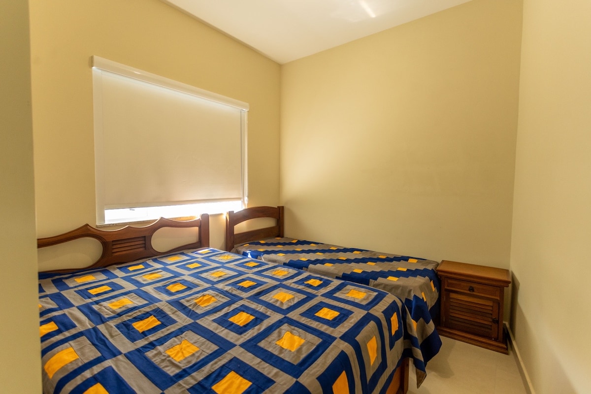 Apartamento no melhor bairro da cidade. Construção é nova e pode escolher entre 3 camas de solteiro e 1 cama de casal e uma de solteiro. No quarto há banheiro e também há uma área de convivência externa com churrasqueira