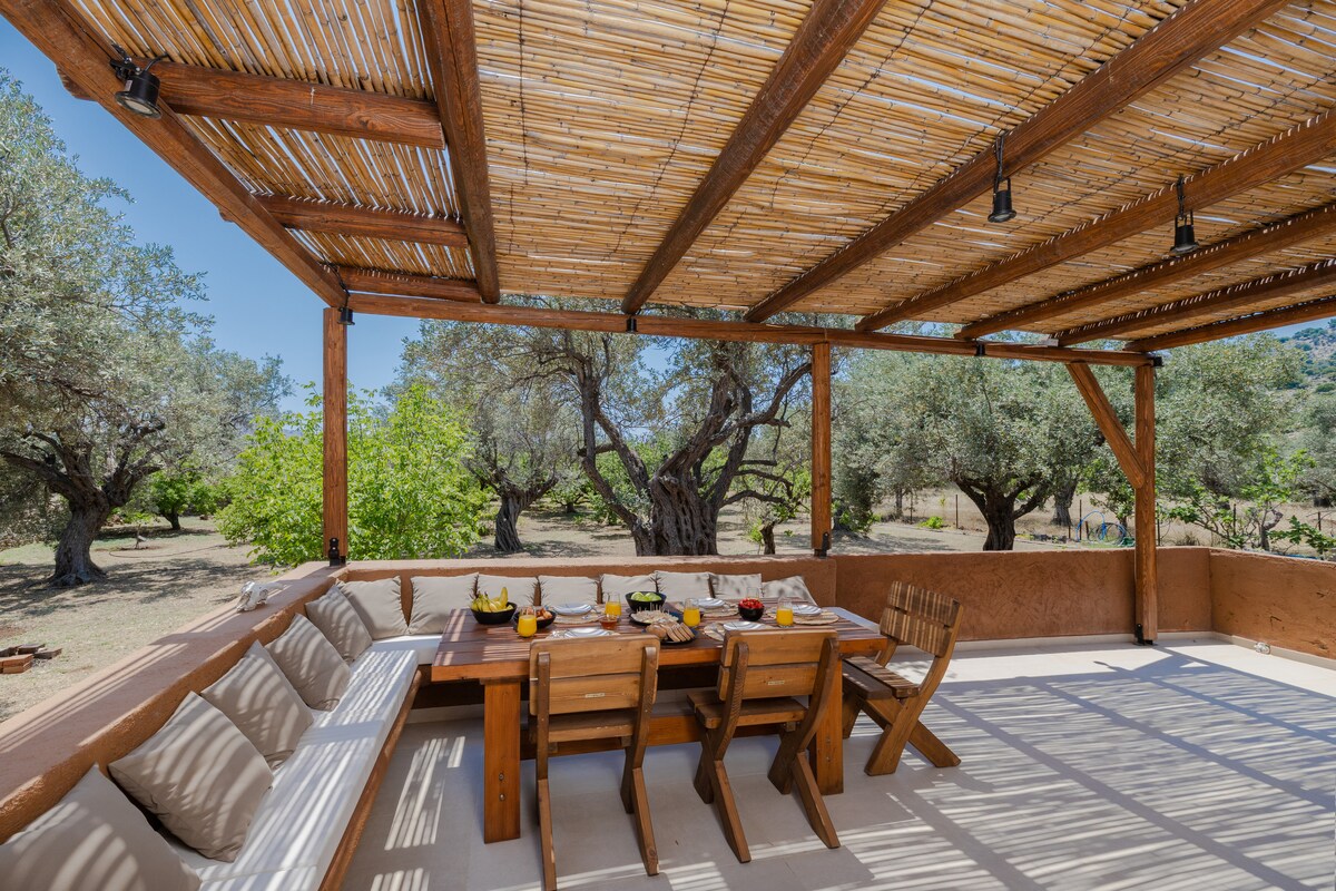 Escape to Casa Napais, a private villa set in a 3-acre estate of olive, apricot, and lemon trees in Rhodes. ✔ Private pool ✔ Absolute privacy – no nearby neighbors ✔ Outdoor dining under a shaded pergola ✔ Modern, stylish interior Just 3 km from Archangelos, ideal for couples or small families seeking a peaceful retreat in nature.