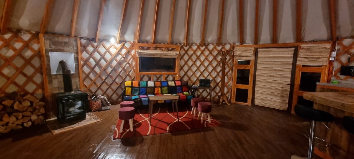 Юрта - це сучасне та оригінальне дизайнерське помешкання, яке використовується родовими племенами Монголії, будівництво яких безпечне, комфортне та екологічне. Запросіть познайомитися з природою, з простим, і насолоджуйтеся чудовими місцями нашої Патагонії. Прокидайтеся в спокійному місці, за 50 метрів від річки, і за 15 хвилин їзди до пляжу! Будьте впевнені в затишному помешканні.