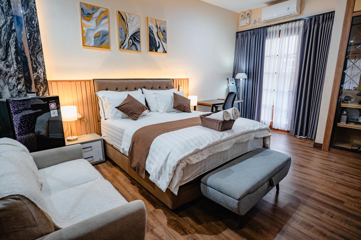 Dragon Huis 2 BR - це мінімалістичний будинок із 2 спальнями. Місткість будинку розрахована на 5 гостей. Розташоване всього в 5 хвилинах їзди від дороги Маліоборо. Dragon Huis обладнаний кондиціонером, телевізором, Wi-Fi, водонагрівачем, туалетно-косметичними засобами та кухнею. До туристичних пам 'яток, до яких можна дістатися пішки: Таман Сарі та Алун-алун Селатан. Загубіться в сім 'ї в Dragon Huis. Dragon Huis - це ваше помешкання в Джок 'якарті.