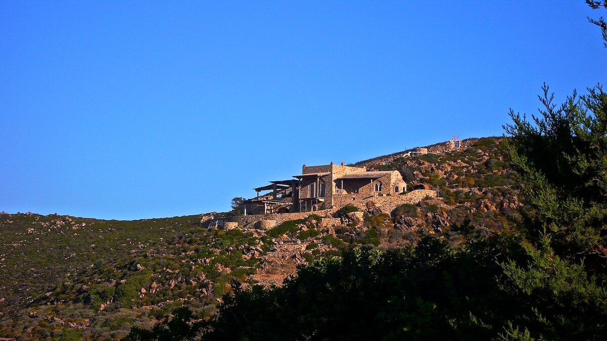 Закрита усамітнення, приголомшлива архітектура, вражаючий вид на море та острів, а також чудові деталі визначають це унікальне помешкання, розташоване на вершині гори з видом на Егейське море. Гідно викритий панорамний басейн, величезні 150-річні тикові двері та шафи, візантійський дизайн каплиці головної лазні та багато іншого роблять це помешканням для оренди в наймальовничій частині острова, всього в декількох хвилинах ходьби від найкращих пляжів, ресторанів, заходів та зручностей, які пропонує Патмос.