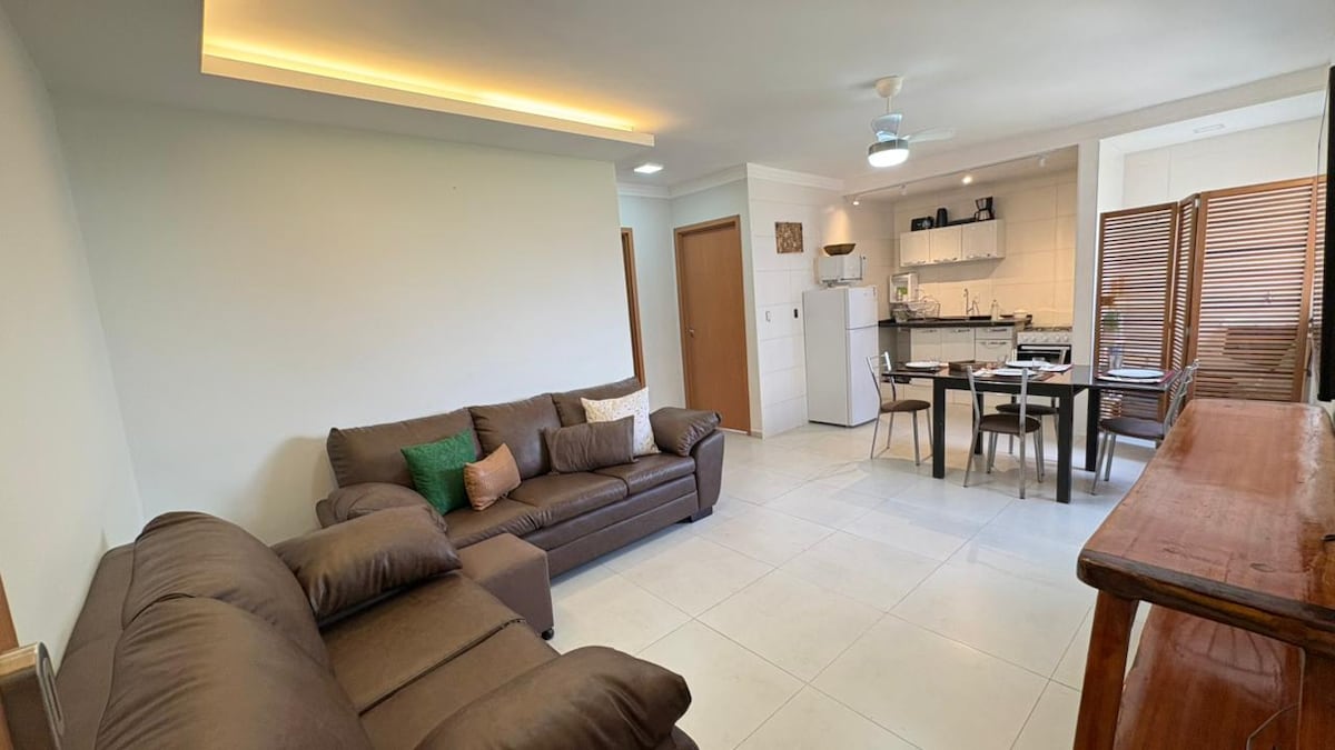 Розкішна квартира з кондиціонером та ліфтом. Ласкаво просимо до нашої чарівної квартири, яка ідеально підходить для тих, хто шукає комфорту та практичність! Чудово підходить для мандрівників і членів сім 'ї. Місце для 03 осіб; Безкоштовне сашеве мило; Cama Casal дуже зручний; Диван-ліжко преміум-класу; Вся кухня з посудом та побутовою технікою; Wi-Fi; Крите паркувальне місце; Безпека та спокій; Приходьте і насолоджуйтеся зручним і комфортним перебуванням; Пральна машина.