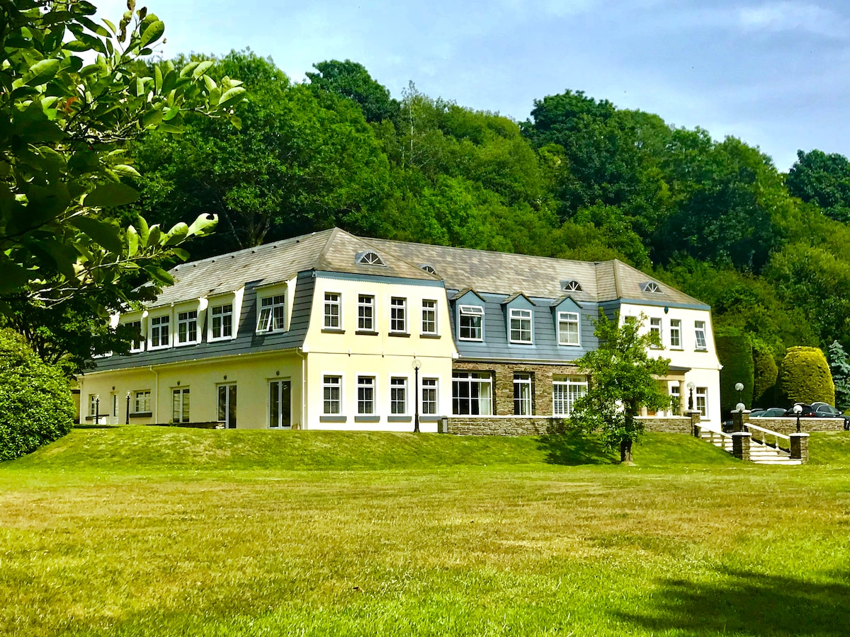 A beautiful, single luxury 5* apartment adjoining Glen Helen House. Over 2 floors, 2 bedrooms, 2 bathrooms, dining kitchen and lounge. Each bedroom has 2 singles OR a superking- for any combination of 4 people - friends, couples or a family. 5 acres of private gardens incl 200 yards of bubbling Nebb riverbank. Ample parking. Centrally situated mins from historic St. John's and a short drive to Peel with bars, restaurants, museums, castle, and the beach! Miles of nearby forest and scenic walks.