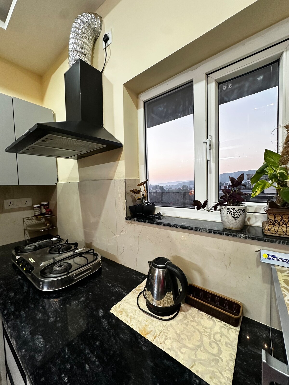 Забронюйте Rishikesh Retreat: Незалежно від того, чи ви мандрівник наодинці, пара, яка шукає романтичний відпочинок, чи сім 'я в духовній подорожі, наша квартира обіцяє незабутнє перебування в цій духовній гавані, а також насолоджуйтеся розкішшю кухні з шеф-кухарем під час вашого перебування в нашій вишуканій квартирі. Незалежно від того, чи ви захоплюєтеся приготуванням їжі, чи просто хочете насолодитися смачними домашніми стравами під час подорожі, наша кухня чекає на ваші кулінарні пригоди.