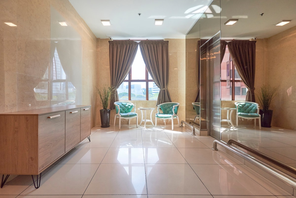 Ласкаво просимо до нашого затишного та стильного апартаментів у готельному стилі, розташованих за адресою Seksyen 17, Petaling Jaya, прямо навпроти знаменитого ресторану SS2. Це продумане помешкання має м 'який сучасний інтер' єр із чистими лініями, заспокійливими кольорами та усім необхідним для комфортного короткого перебування. Ідеально підходить для мандрівників наодинці, пар, ділових гостей або тих, хто шукає тихий відпочинок біля чудової їжі та зручностей.