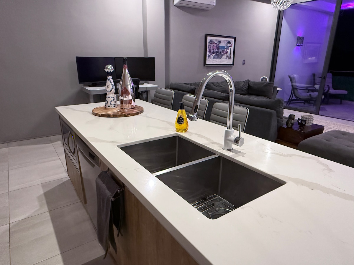 Добре мебльований кондомініум неподалік від пристані та центру міста! Насолоджуйтеся нашим абсолютно новим кондомініумом, повним додаткових зручностей! Від телевізорів у кожній кімнаті, повністю обладнана кухня до трьох басейнів і тренажерного залу, вам обов 'язково сподобається перебування у нас. Розташований в найексклюзивнішому районі CSL - Ель-Педрегал. Менше 5 хвилин ходьби до пристані та центру міста Кабо-Сан-Лукас. У вас не закінчиться, чим можна зайнятися. Зберігайте простий у цьому спокійному та розташованому в центрі помешкання.