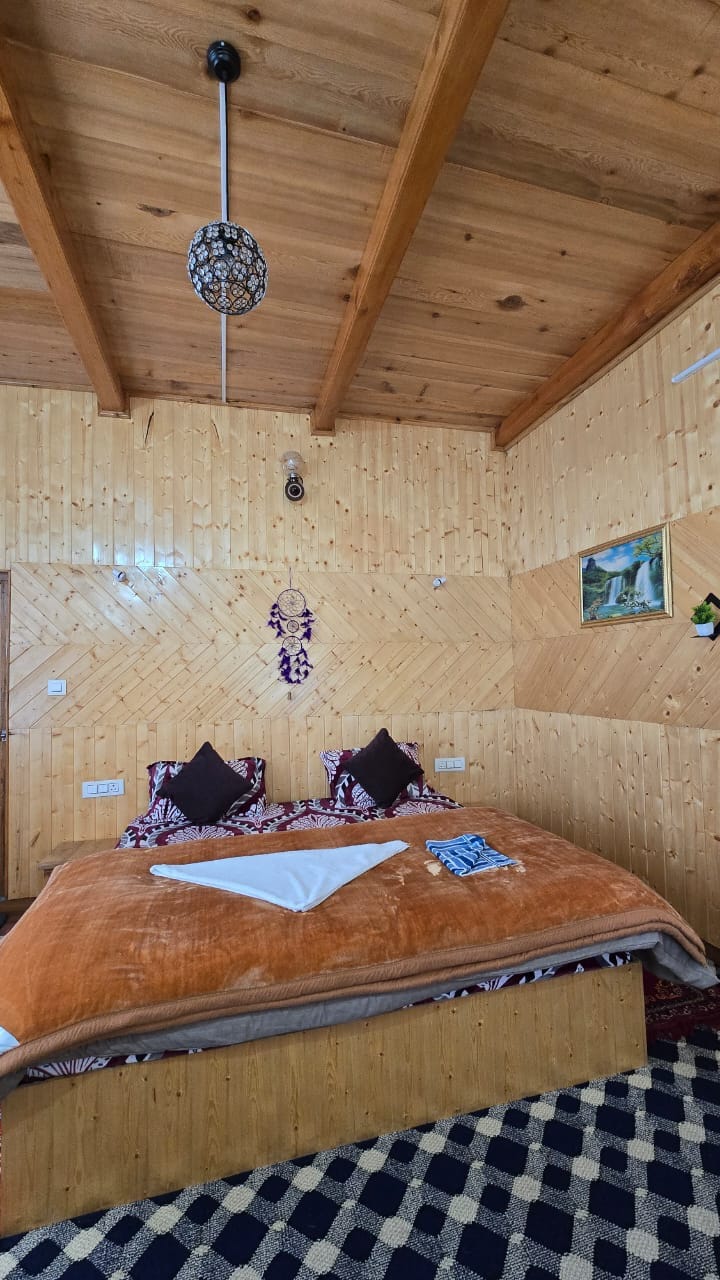 "Welcome to our cozy log cabin nestled in the heart of the enchanting Jibhi, Himachal Pradesh, where every morning, you'll wake up to breathtaking views of the majestic Jalori Pass. Our log cabin-style property provides a warm and rustic ambiance that's perfectly complemented by modern amenities for your comfort. The bedroom offers an incredible view of Jalori Pass, making each morning a magical moment as you open your eyes to nature's grandeur,