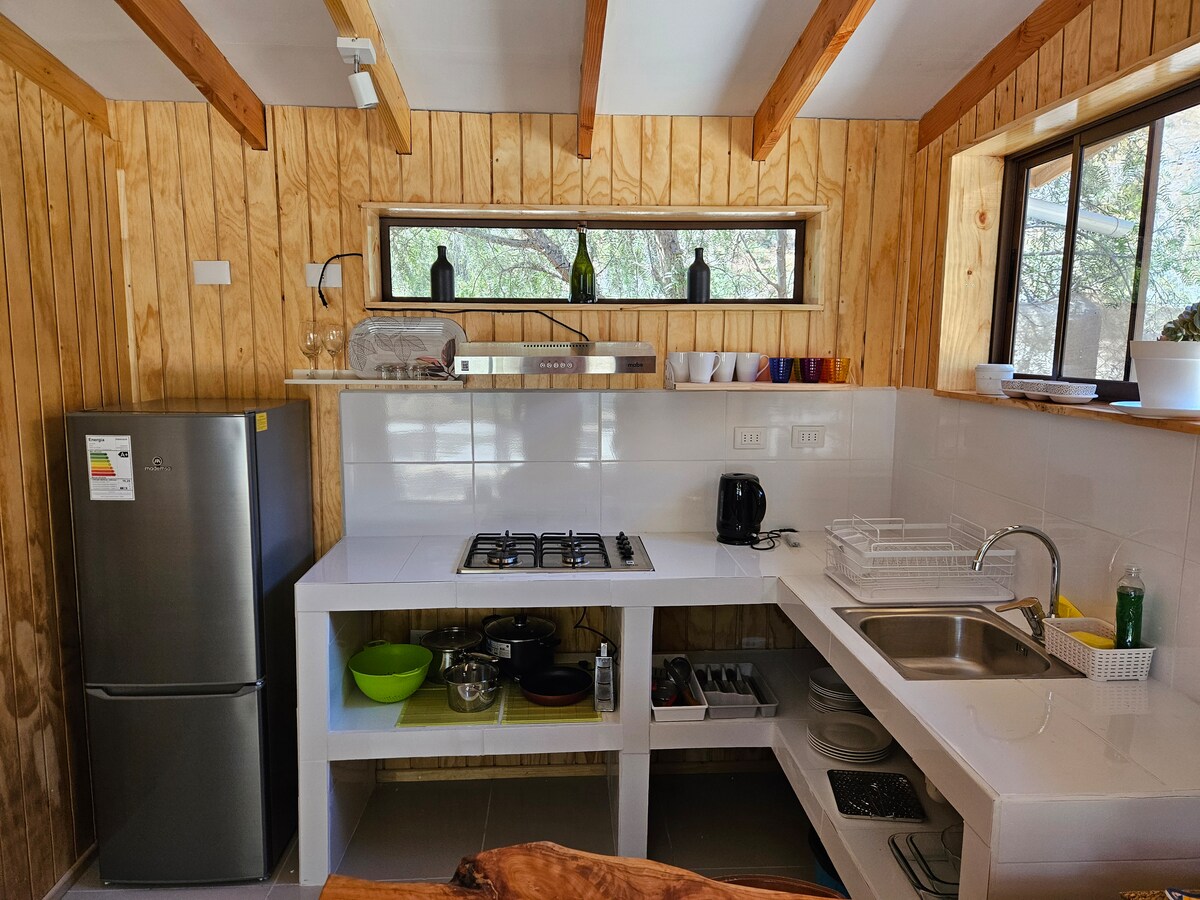 П 'юкенес - це унікальний прихисток у центрі Валле-де-Елькі, в місті Хоркон. У нас є 2 повністю обладнані зруби для 4 осіб, що поєднують розкіш і комфорт у сільській місцевості. Побудовані з типових матеріалів цього району, вони мають кухню, 2 спальні, 2 ванні кімнати та затишні зони відпочинку. Окружені природою, виходом до річки та під зоряним небом, вони ідеально підходять для відпочинку та насолоди спокоєм долини Елькі