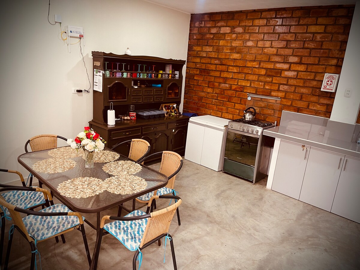 Гарне бунгало, де можна відпочити. Він має 3 спальні, 4 ліжка, 2 ванні кімнати та обладнану кухню. Ви можете насолоджуватися прекрасним видом і приготувати смачний гриль з друзями або сім’єю. Вона розташована на пляжі Санта-Елена, дуже тихому місці, приватному пляжі з камінням і піском, у помешканні є парковка, 6 хвилин на автомобілі від бульвару Чако, з якого можна вирушити на острови Балестас, 9 хвилин від заповідника та 15 хвилин від центру міста Піско
