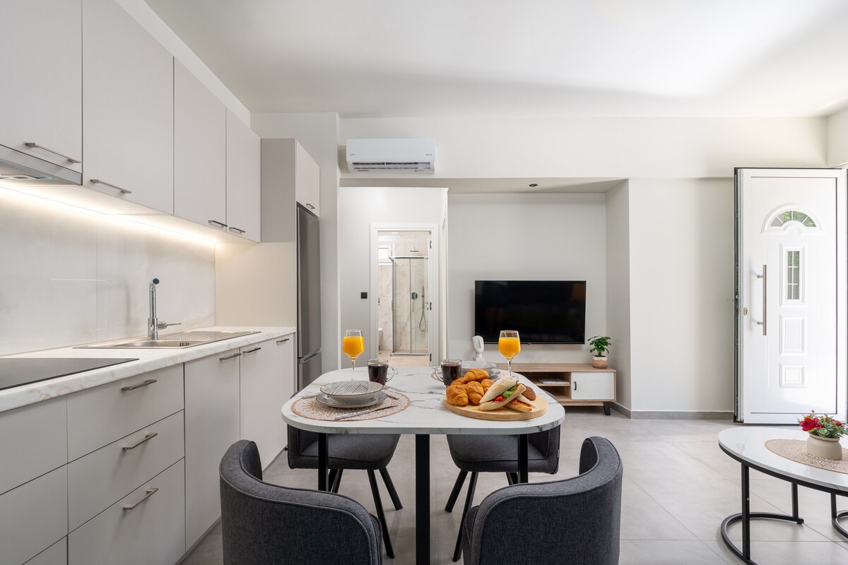 У апартаментах Nefeli (90 кв. м) є 1 спальня, 1 менша спальня, де можна комфортно розмістити до 6 осіб, повністю обладнана, щоб задовольнити ваші потреби, достатньо простору й належний рівень приватності. Крім того, тут є затишна вітальня та їдальня, а також чудовий вид на море з балкона площею 20 м2. *** БАСЕЙН АБСОЛЮТНО НОВИЙ І ПОЧНЕ ПРАЦЮВАТИ З 1 ТРАВНЯ 2022 року. КРІМ ТОГО, МИ НАДЗВИЧАЙНО РАДІ ПОВІДОМИТИ, ЩО НОВИЙ ТРЕНАЖЕРНИЙ ЗАЛ ГОТОВИЙ І БЕЗКОШТОВНО ДЛЯ ВСІХ НАШИХ ГОСТЕЙ.