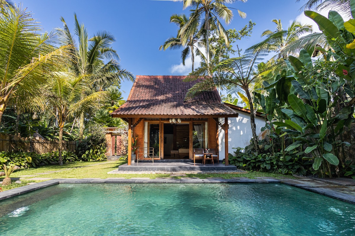 Наша нова агава приватна та романтична: 100-річна тикова деревина, тканий трава ручної роботи та омріяний басейн із білим каменем! Ми знаходимося вдалині від протореного шляху і для людей, які підходять (40 сходинок), але поруч із крутими кафе, йогою та рисовими прогулянками. У спальнях є кондиціонер і замок, але вітальня залишається відкритою для максимального проживання в приміщенні на відкритому повітрі. Швидкий Wi-Fi. Агава не має доступу до автомобіля. Ваш автомобіль висадить вас у Bintang, а наші співробітники зустрінуть вас і нестимуть ваші валізи в 5 хвилинах ходьби. Оскільки нас важко знайти, ви ПОВИННІ скористатися нашими водіями!