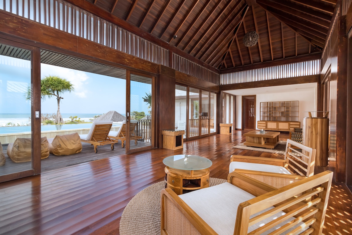 🌊 Вілла з 3 спальнями на березі моря з видом на океан – Бату-Беліг Відчуйте переваги життя на пляжі в цій віллі з 3 спальнями, приватним басейном і видом на океан, розташованій прямо на пляжі Бату-Беліг у Семиньяку. Ця вілла ідеально підходить для сімей, груп друзів і пар. Вона пропонує просторі інтер’єри, приголомшливий вид на море з тераси та прямий доступ до піску. Незалежно від того, чи ви тут на відпочинку з близькими, чи на відпочинку з друзями, ця вілла є ідеальною базою для вашої пригоди на Балі.