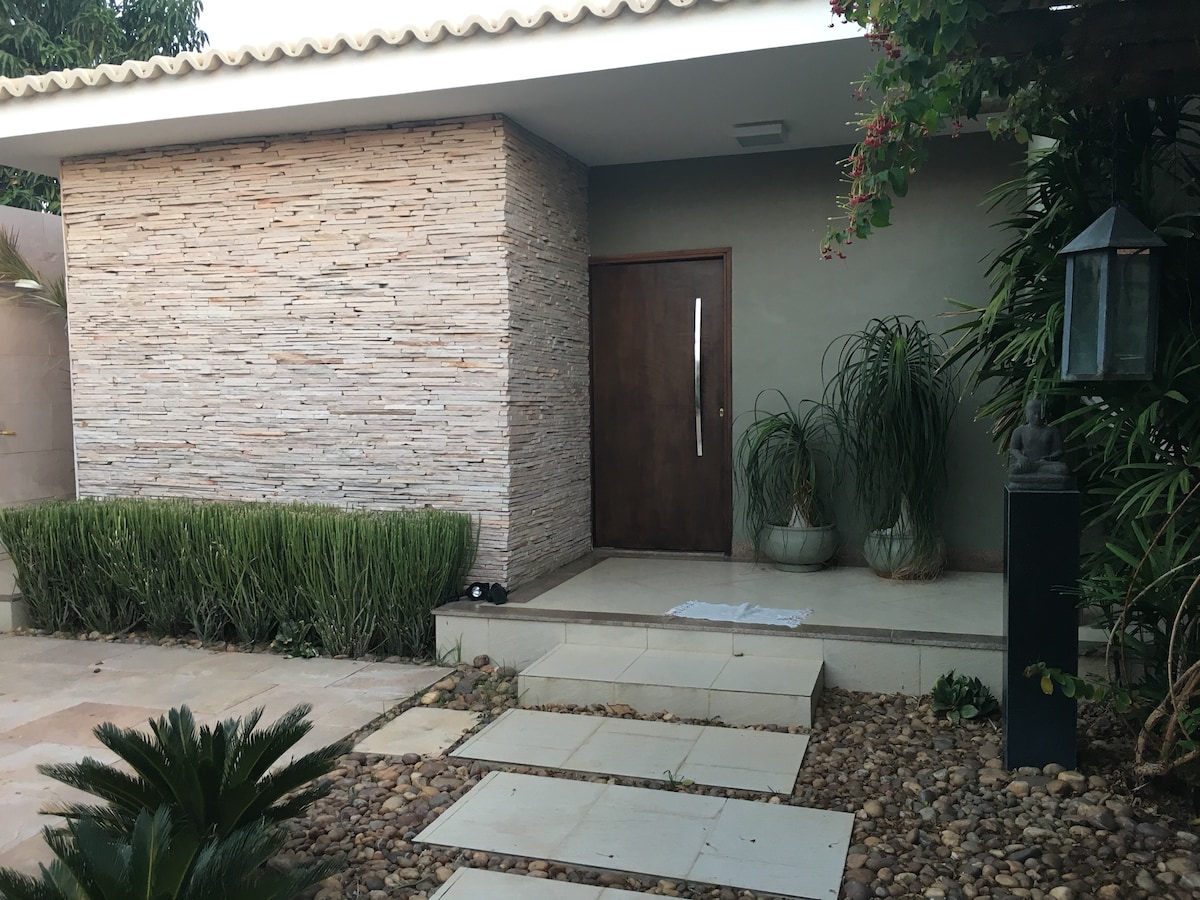 Просторий, з гаражем, 3 спальні (3 двомісні ліжка та 1 одномісне ліжко, з повним набором простирадл) з кондиціонером, 2 люкси, 1 соціальний туалет, зона для гурманів з телевізором, барбекю та душ. Повна кухня з холодильником, плитою, мікрохвильовою піччю, аерогрилем, електричною кавоваркою, кавоваркою Dolce Gusto, сендвічницею, блендером та різним посудом. Пральня. Розташована в 03 хвилинах від торгового центру River. Ресторан Rex, пекарня, супермаркет, безкоштовний ярмарок.