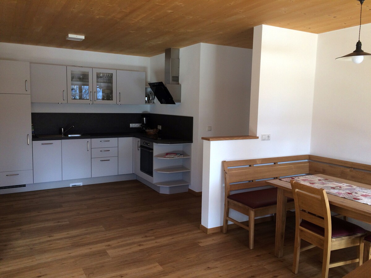 Neu errichtete, sehr ruhig gelegene Parterrewohnung am Dorfrand von Kiens. Das Dorf befindet sich ca. 12 km von den Aufstiegsanlagen des Kronplatzes und ca. 10 km von der Stadt Bruneck entfernt . Es ist ein idealer Ausgangspunkt für die verschiedensten Aktivitäten. Unsere Wohnung "Mitterhaus" ist neu erbaut und mit hochwertigen Materialien ausgestattet. Ein Lieblingsplatz ist die Sonnenterrasse mit der Liegewiese. Ideal für Familien oder Freunde.
