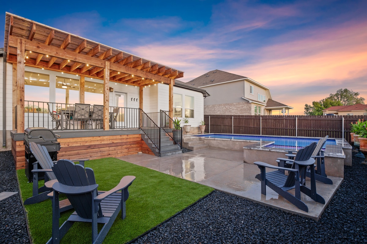 Experience all Austin has to offer in this North Austin Getaway. 13 miles to Downtown Austin and minutes from Typhoon Texas Water Park. There are several outdoor bars with live music less than a mile away if you feel like staying close. This home also offers a 6 person Jacuzzi with LED colored lights and waterfall, 3 bedrooms with SmartTvs/2 baths, game room with pool table and darts. Don't forget to play the Austin staple, corn hole, in the backyard while you BBQ Dog Friendly ($45 pet fee)