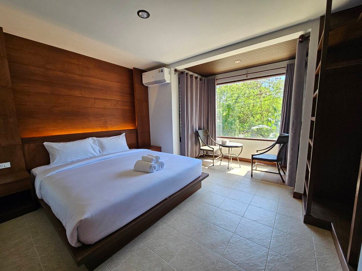 Чудове розташування в місті Крабі, зручний доступ до центру міста, громадського транспорту, ринку, торгового центру, храму, музею, набережної, кафе, пабу та ресторану. Сучасна кімната з двоспальним ліжком, кондиціонером, холодильником, телевізором, Wi-Fi, безкоштовною кавою та чаєм, дуже зручно.