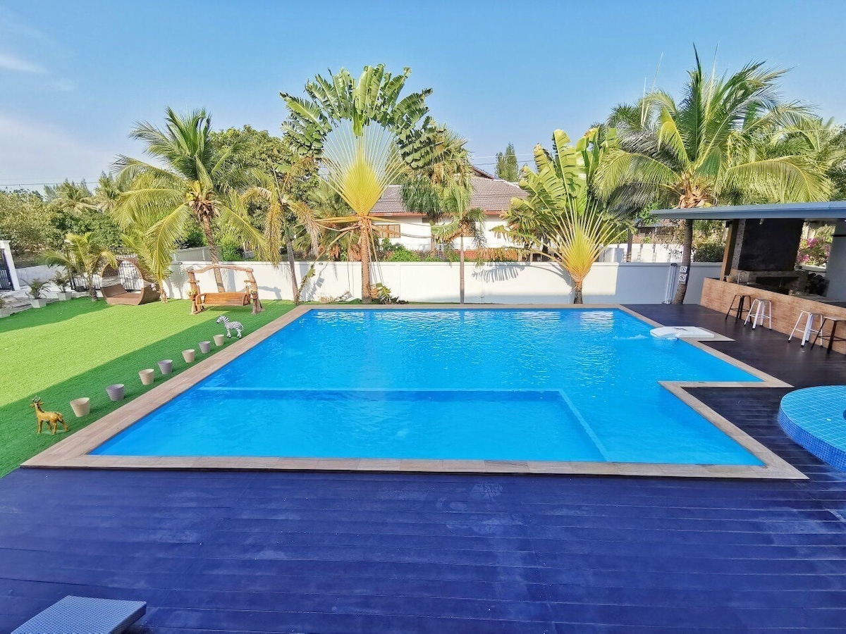 Велика вілла з басейном Cha-am - Велика вілла з басейном, 7 спалень, 5 ванних кімнат - Простора вітальня - Стіл для басейну - караоке - 7 спалень, 5 ванних кімнат - Повністю обладнана кухня - Великий басейн з дитячою зоною. - Джакузі - Модні гумові іграшки для використання в басейні - Барбекю з обладнанням; - Камін імітації - безкоштовний Wi-Fi - 2 десятки безкоштовних пляшок для питної води, 1 мішок льоду, 2 мішки вугілля - Велосипеди доступні для використання. - На відстані близько 250 метрів є 7-Eleven.