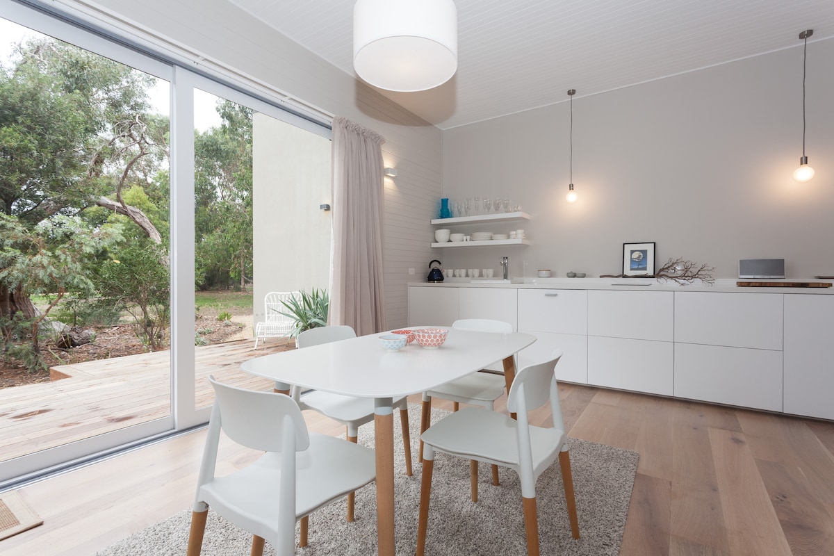 Сучасний приватний гостьовий будинок-студія на узбережжі, лише за 500 м від приголомшливого пляжу для серфінгу на острові Філіпп. Повністю автономний, відокремлений від головного будинку, доступ через бічний вхід, безкоштовна парковка поза вулицею. Окрема ванна кімната та повністю функціональна кухня. Їстівний сад, відкрита веранда та місце для багаття. Пішки від магазину з алкоголем, фургонів з піцою та кавою, громадського транспорту та велосипедних доріжок. Ідеально підходить для пар, безпечно для самотніх, вітає ЛГБТКІА+, людей похилого віку та... можна з собаками! (Вибачте, без котів)