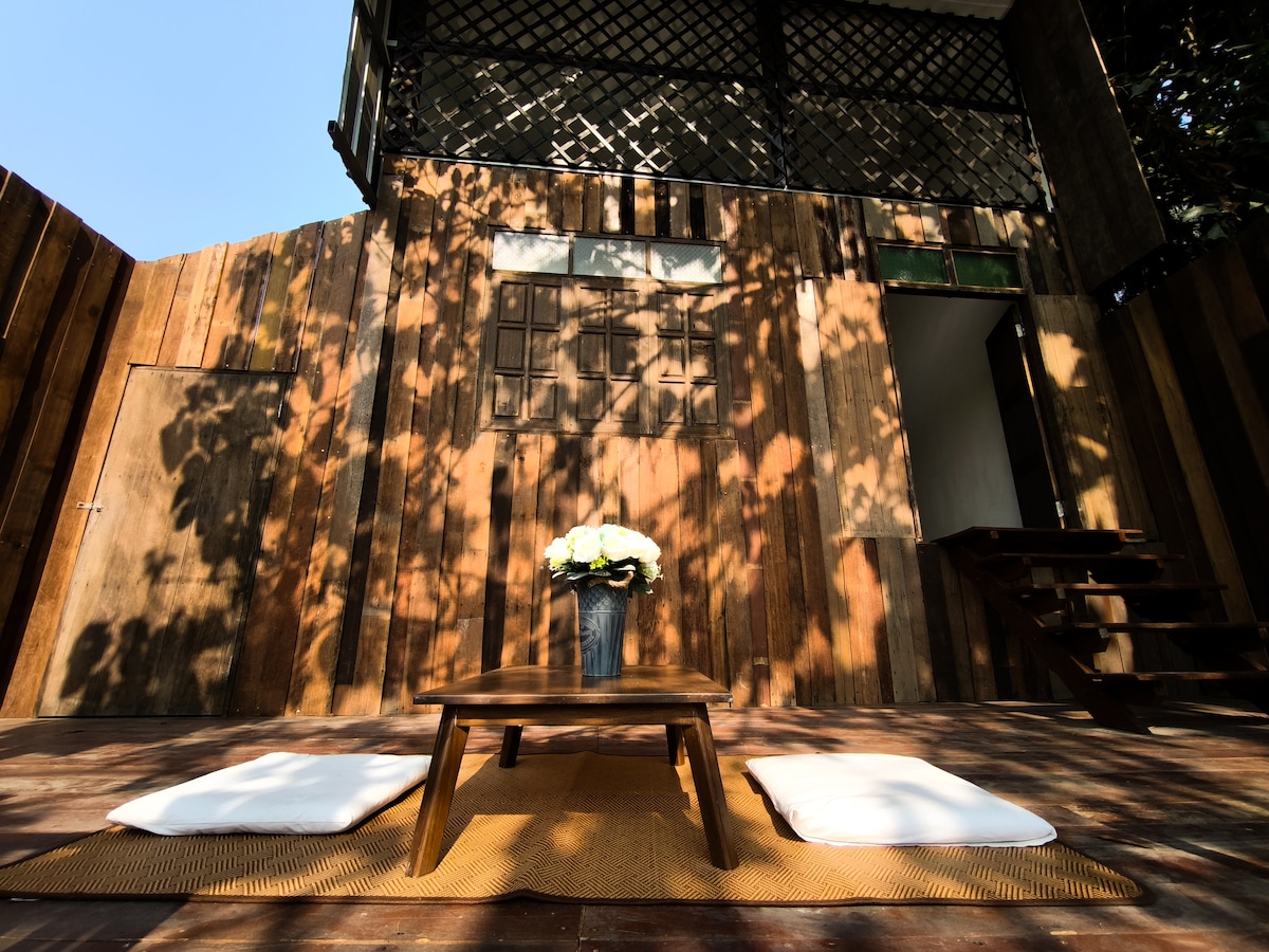 Ця чарівна приватна квартира-студія в стилі Ланна розташована в центрі старого міста. Всього 5 хвилин ходьби до недільного ринку, храмів, масажних салонів, пунктів прокату скутерів, парку та магазину 7-11. Відпочиньте в окремому гостьовому будинку яка має власний окремий вхід, доріжку та відкритий куточок — ідеально підходить для ранкової кави, читання або невеликої перекурки. Гостьовий будинок розташований у задній частині великого 2-поверхового будинку в стилі Лани. Передній двір і парковка для мотоциклів є спільними та безкоштовними.