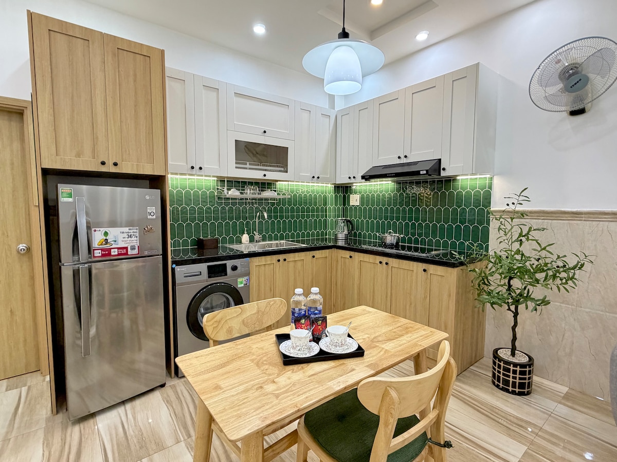 Розкішна квартира площею 32 кв. м у районі Біньтхань з сучасним дизайном, висококласними меблями та високою безпекою, що забезпечує приватність та зручності. - Квартира DuCu розташована недалеко від аеропорту TSN, торгового центру, великих університетів і жвавої обідньої зони (<2 км). - Доступ до дверей із сучасним кодом, відбитком пальця, ключовою карткою. - Камери відеоспостереження в кожній зоні та на кожному поверсі забезпечують найвищу безпеку. - Простора парковка для мотоциклів. - Життя в цивілізованому, ввічливому, високоінтелектуальному середовищі. - Прибирайте постійно.
