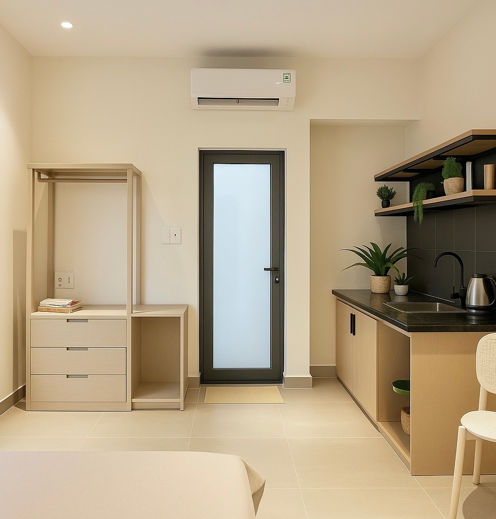 Newly built, launched in Dec 2023! Located in a quiet alley in downtown Saigon, our cozy studio combines a unique design with whimsical charm. Amenities include fully equipped kitchen, bathroom with rain shower, Netflix & ultrafast 250+ Mbps wifi . At ground, you can enjoy a snack or coffee at the Hai Cai Tay Cafe. We also have a washer/dryer for our in-house guests. We are right next to the Wink Hotel & in walking distance to many restaurants, cafes, and bars.