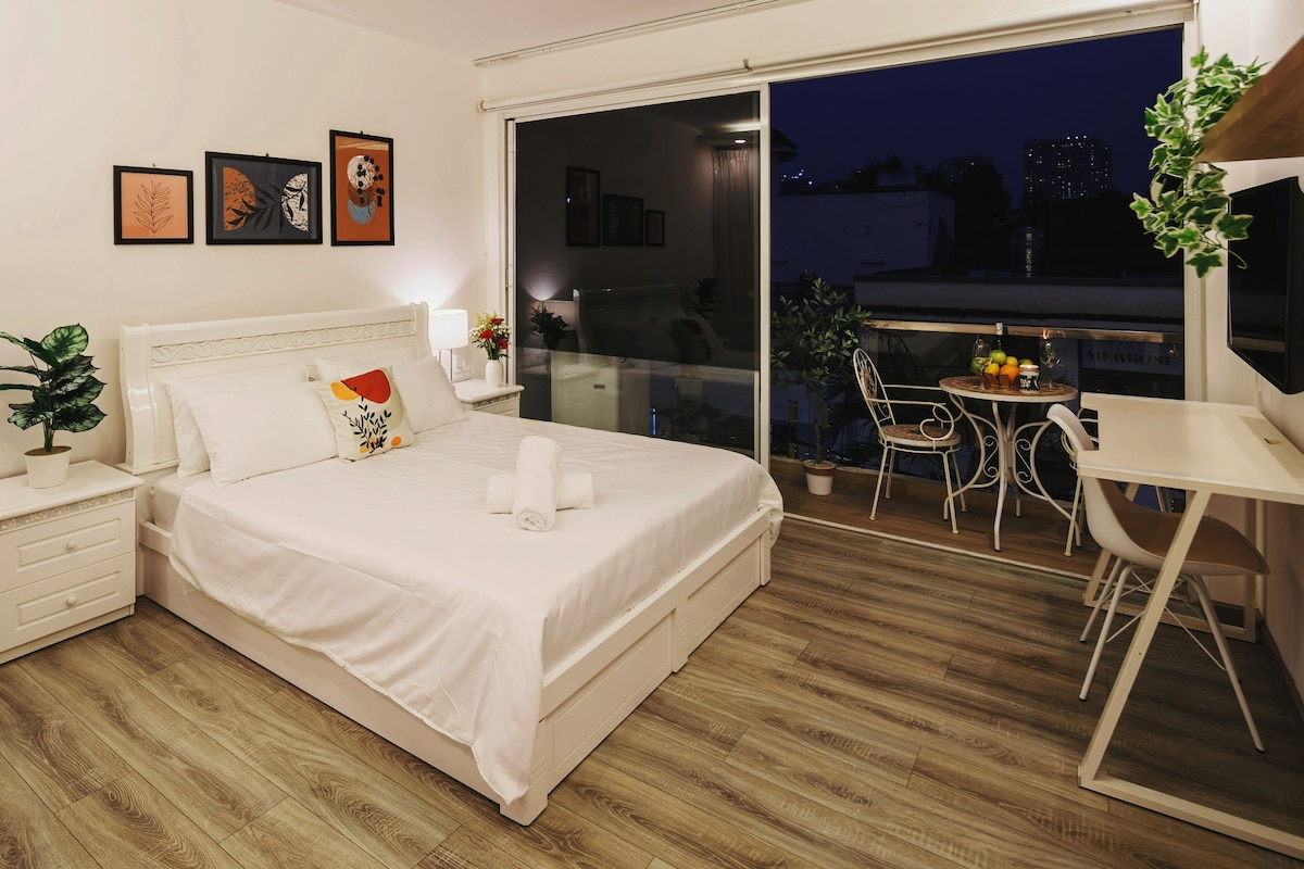Spacious 1 bedroom entire flat. Peaceful greenery view of Thao Dien neighbourhood. 1 AC. Queen bed. Comfy couch. Lightful ceiling-to-floor windows. Hot shower. Fully equipped kitchen to serve daily meals. Washing machine. Smart TV w/ Youtube, Netflix & upgraded cable channels. High speed wifi. Very quiet, bright & airy, 24/7 security, Located in District 2, only 15-20mins drive to District 1 (city center) Easy access to nearby coffee shops, restaurants, convenient stores & supermarkets
