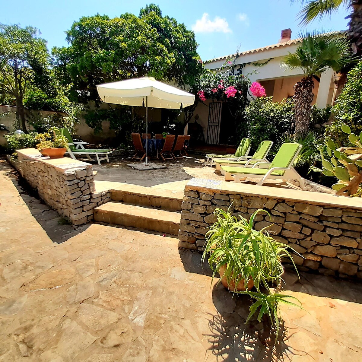 Незалежна вілла в межах резиденції приблизно в 1,5 км від селища та пляжу. Середземноморський сад міцний, великий, ексклюзивний і обладнаний усім необхідним. Дві великі тераси. Кухня та душ на відкритому повітрі. Ви можете насолодитися чудовим видом на Монте-Кофано, Еріче та Егаді. Будинок обладнаний всім зручностям. Є дві спальні: двоспальна та одна з двома односпальними ліжками, вітальня з диваном-ліжком та смарт-телевізором, кондиціонер, Wi-Fi, крісло-гойдалка та барбекю.
