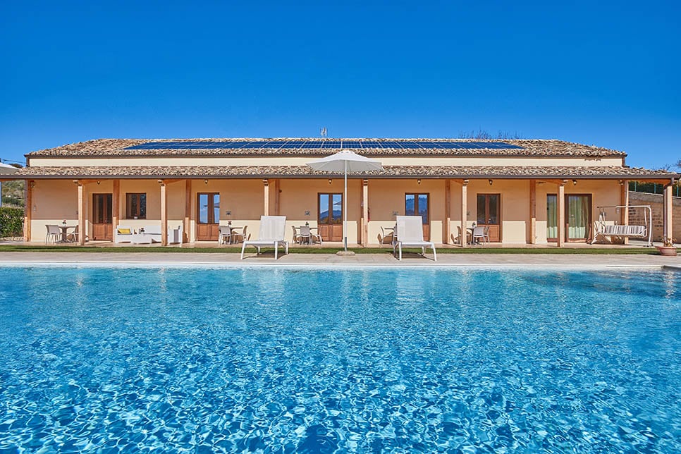 Вілла в тихому Палаццоло-Акрейде,між Сіракузами та Ното. Типова традиційна архітектура з великими вікнами, які заливають інтер 'єри теплим світлом, дозволить вам отримати унікальні враження. Вишукані інтер 'єри з відкритими балками та кам' яною підлогою Модіки додають до автентичності. Про простий декор подбають детально. Помешкання, призначені для розслаблення, водночас підтримуючи тісний зв 'язок із сицилійською традицією, які ідеально підходять для дистанційної роботи
