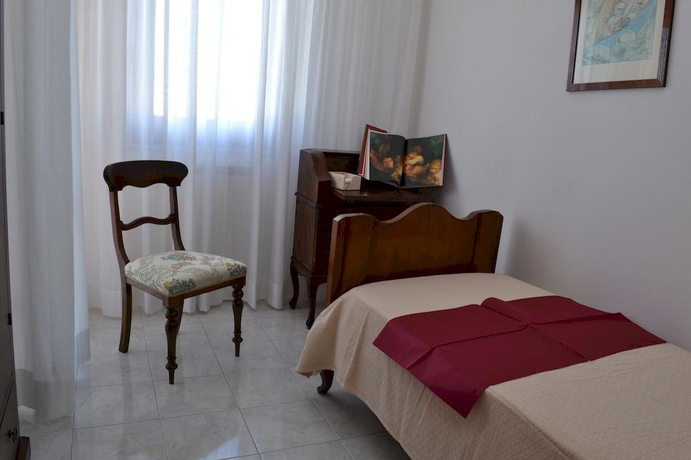 La camera con bagno privato è molto luminosa e silenziosa. La camera ha una superficie di 16 mq con bagno privato di 3,5 mq. Letto matrimoniale, consolle con specchio e poltroncina, armadio a vista e piccolo tavolino arredano la camera. Il bagno è ben attrezzato, il rivestimento della doccia e delle pareti è in resina per maggior igiene.