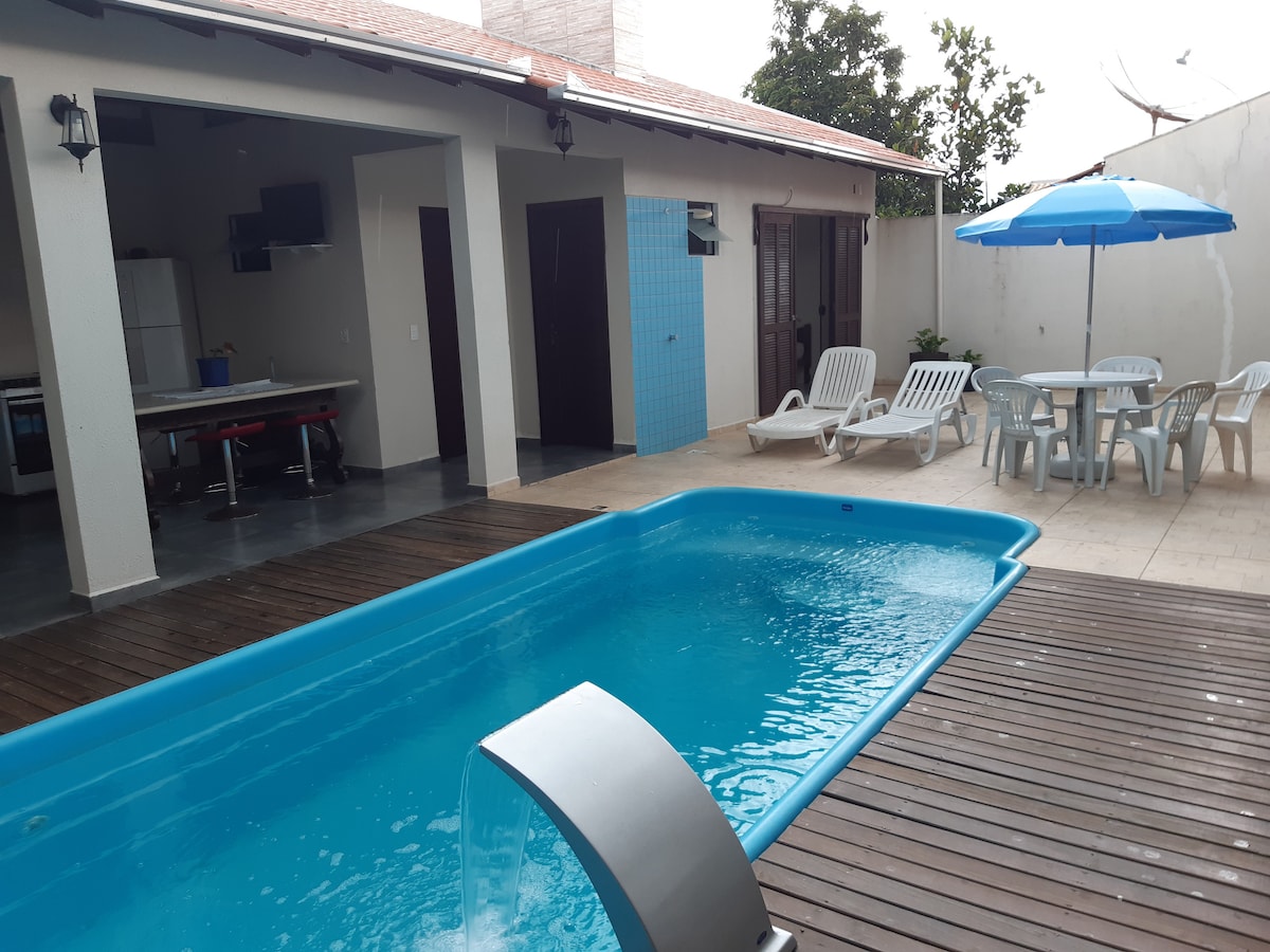 Нашим гостям сподобається перебування в нашому будинку, він просторий і дуже комфортний, з кондиціонером у кожній кімнаті. У зоні для вечірок є барбекю, холодильник, газова плита, дрова та басейн з сонячним опаленням. Гараж розрахований на 4 автомобілі без плати за паркування. Будинок знаходиться в 100 метрах від пляжу Алегре та в 7 км від найбільшого тематичного парку Південної Америки Бето Карреро. У нас є безкоштовний Wi-Fi для гостей.