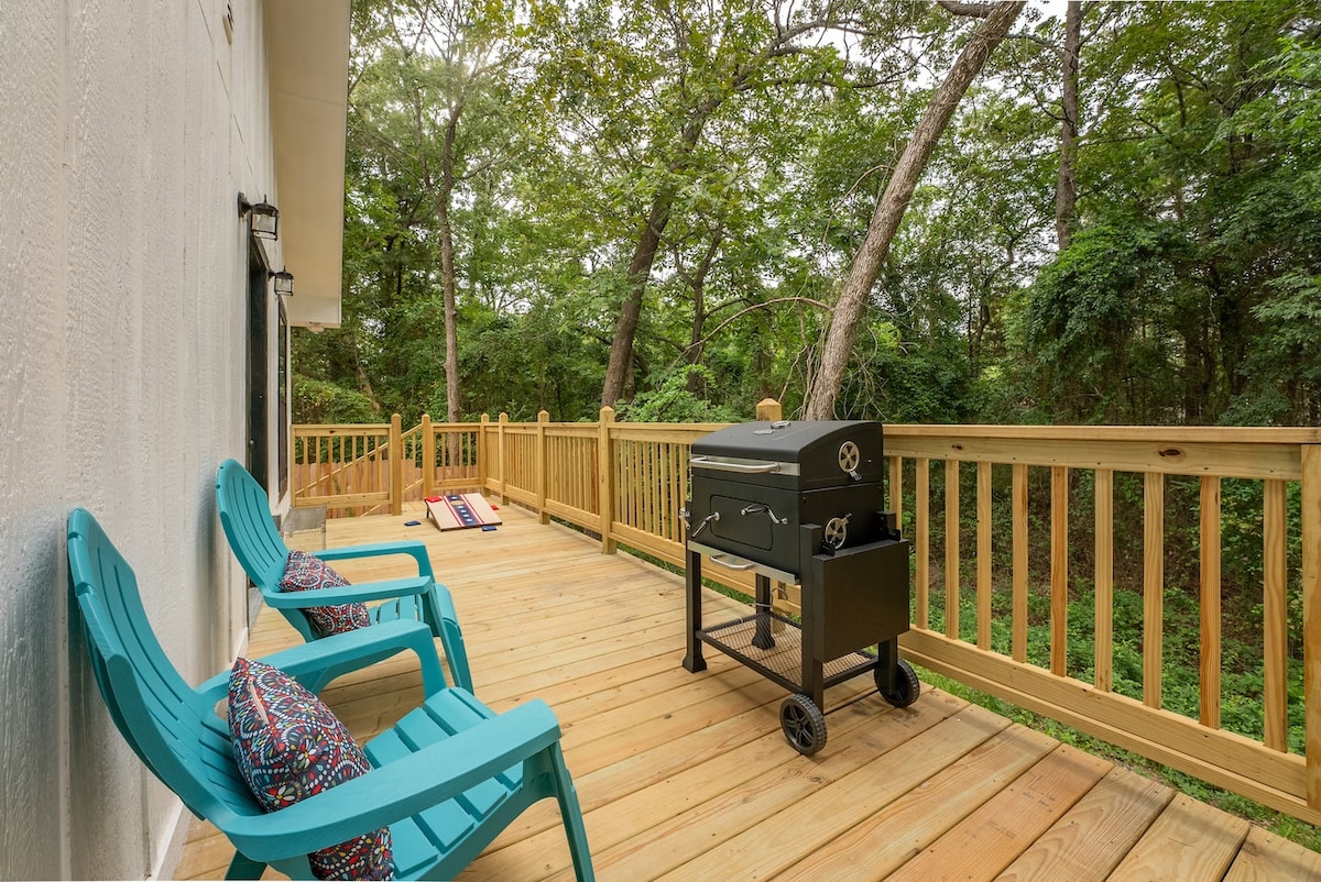 Помешкання розташоване недалеко від аеропорту, парків, центру міста, мистецтва та культури. Вам сподобається, тому що він схований на 75 акрах лише за милю від міських обмежень. У помешканні є професійна кухня, прекрасний вид на дуби, приватний басейн, двоярусна кімната з шістьма ліжками, окрема двомісна кімната, ігрова кімната, ігрова кімната, балкон і басейн. Дитячі ліжечка доступні за запитом. Ми знаходимося всього в п 'яти хвилинах від міської площі та всіх задоволень, які може запропонувати наше маленьке містечко!