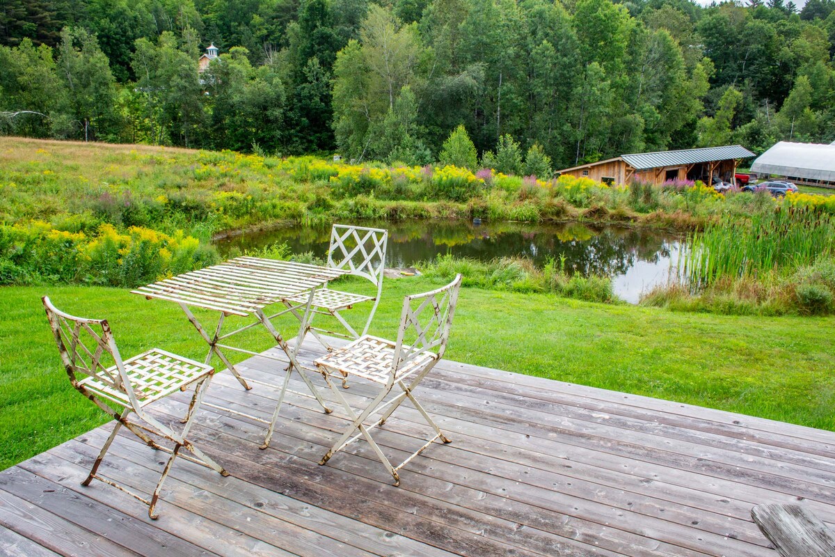 Приватний гостьовий будинок, розташований на площі понад 250 акрів, з повністю обладнаною кухнею для гурманів і чудовим видом на тихі поля та долину. Ставок із дошкою для дайвінгу для купання влітку. Гігантський санний пагорб - улюблене місце як дітей, так і дорослих. Стежки на території для піших походів, катання на лижах і снігоступах. 15 хвилин до Вудстока, штат Вермонт. 45 хвилин до Кіллінгтона,Піко та Окемо. Чудові ресторани та магазини неподалік. Ганновер і Норвіч Вермонт - 20 хвилин. Зверніть увагу, що помешкання недоступне для людей з обмеженими можливостями.