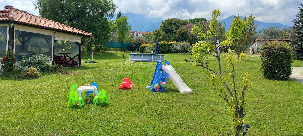 Найдоступніша пропозиція в усій Греції для відпочинку або пригод на приватній віллі площею 145 кв. м. Він задовольняє потреби щонайменше 4 дорослих і 4 дітей. Красивий сад площею 500 кв. м, включаючи дитячий майданчик, басейн площею 28 кв. м, барбекю, ставок та багато куточків для відпочинку. Усе це між пляжем і горами. 800 метрів від великого пляжу, лише 10 хвилин від Літохоро, входу на гору Олімп. Ідеальна база для екскурсій у кілька цікавих місць.