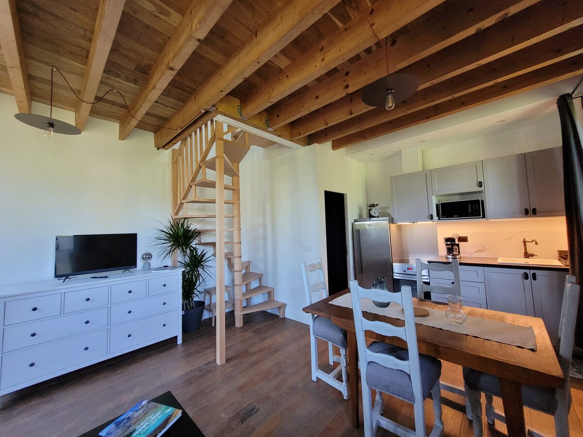 Забудьте про свої турботи в цьому стодолі, відновленому в просторому й спокійному двоповерховому будинку. Ця квартира розташована на першому поверсі незалежна та добре обладнана для прийому 4 осіб. Він ідеально розташований для туристичних, сімейних або професійних подорожей. На першому рівні у вас є велика вітальня з обладнаною кухнею, вітальня-їдальня, душова кімната та окремий туалет. На другому рівні - 2 спальні, 2 двоспальні ліжка з 2 робочими місцями.