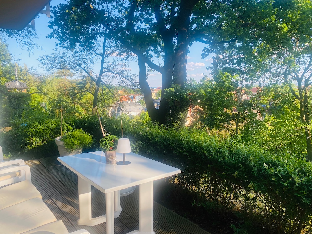 Мінімальна тривалість перебування 2 ночі Розслаблена спокійність у винограднику та садовому місті Радебюль, що неподалік столиці штату Дрезден. Хороший доступ до громадського транспорту (автобус, S-Bahn та трамвай) і розташований в безпосередній близькості від Ельберадвега. Любовно відремонтована, закрита 2-кімнатна квартира (приблизно 50 квадратних метрів на 2 рівнях) з окремим входом, вбудована в сад, який можна використовувати за розташуванням.
