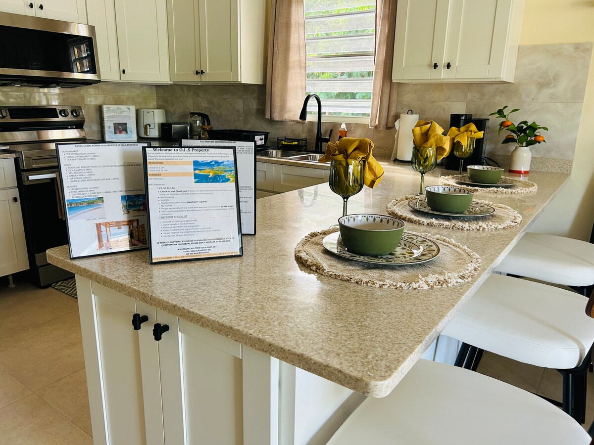 Просторий будинок на пагорбі всього за 10 хвилин від аеропорту, ідеально підходить для сімей або груп. На вас чекають 3 комфортні спальні, повністю обладнана кухня, простора вітальня та захопливі краєвиди з патіо, де дмуть легкі вітерці. Ви будете за 10 хвилин від пляжів, магазинів і ресторанів, але при цьому в достатньо затишному місці, щоб мати змогу відпочити. Самостійне прибуття, безпечна парковка та надійний кондиціонер забезпечують комфортне перебування. Це зручна база на острові зі справжнім місцевим комфортом.
