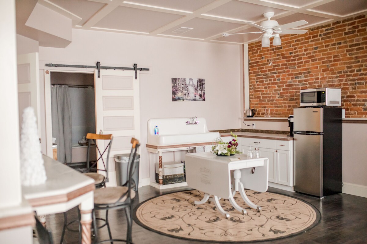 Насолоджуйтеся ностальгічним центром Ганнібала в цій унікальній квартирі, розташованій на вулиці Мейн-стріт, всього за кілька кроків від кінотеатру, ресторанів і барів, магазинів, музеїв, набережної річки та історичних пам 'яток Марка Твена. Окрема спальня з телевізором із плоским екраном, вітальня з диваном і кушеткою, а також повністю обладнана кухня інтер 'єр цього помешкання обов' язково зачарує будь-якого відвідувача. Забронюйте на вихідні, тиждень або довше.
