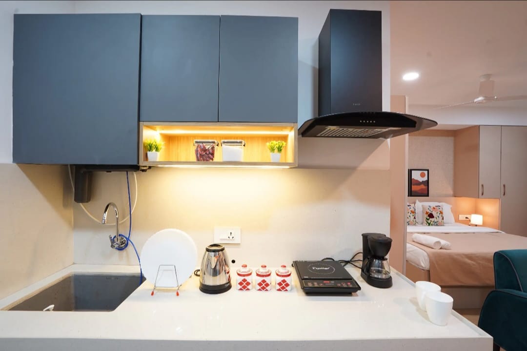 Welcome to Peacefull NEON Studios - by Ratna Estate pvt Ltd where modern luxury meets ultimate convenience! Our brand-new studio apartment is just 400 meters from Pune International Airport, located in the upscale Viman Nagar neighborhood. Perfect for business travelers, couples, and solo adventurers who appreciate style, comfort, and a prime location.