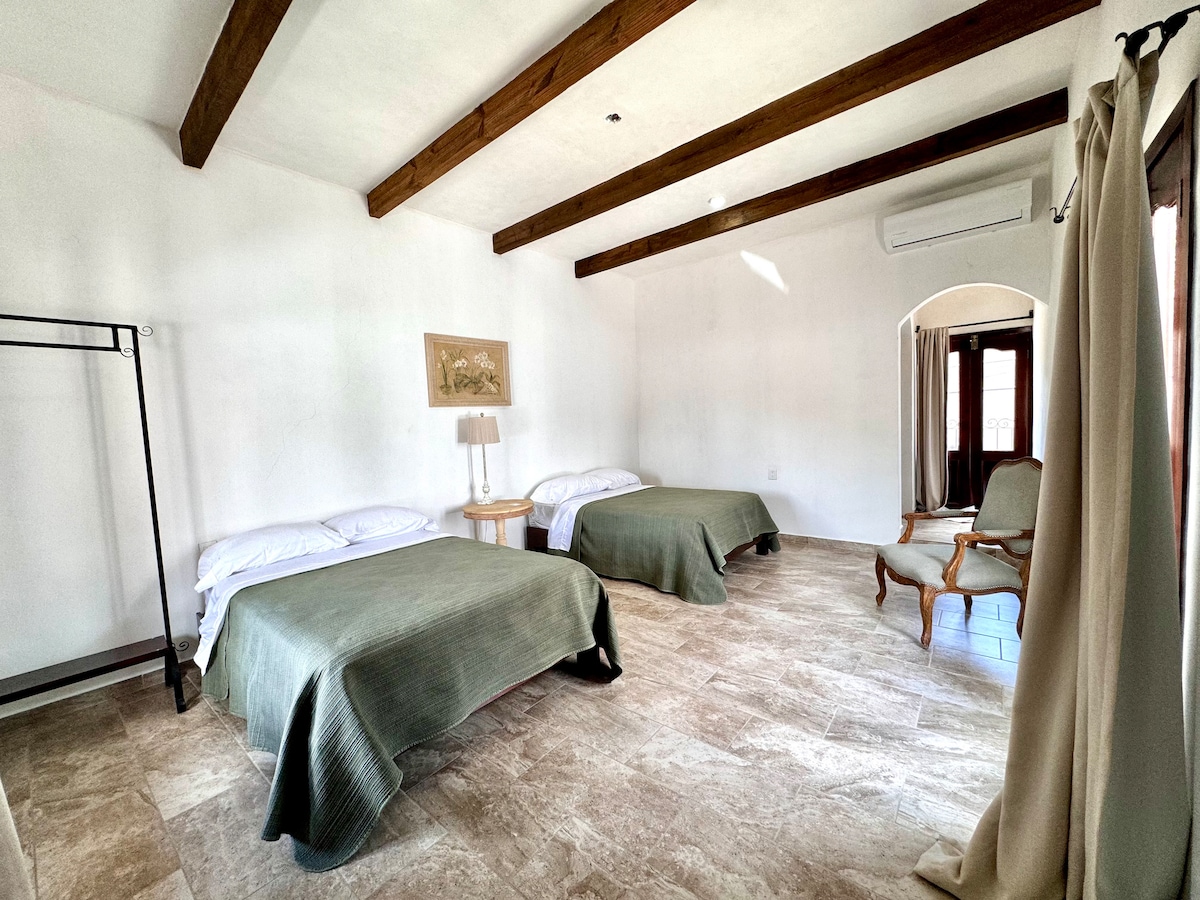 Розташований в 8 хвилинах від центру Ялпана та в декількох кілометрах від набережної Калі-Секрето, комплекс із лише 8 кімнат. Кімната готельного типу з двома двоспальними ліжками, власною ванною кімнатою, телевізором і кондиціонером чекає на вас спекотні ночі. Приготуйтеся насолоджуватися прекрасними краєвидами, які Ялпан має подарувати вам, і коли ви прокинетеся, ви знайдете перед своєю кімнатою неймовірний басейн.